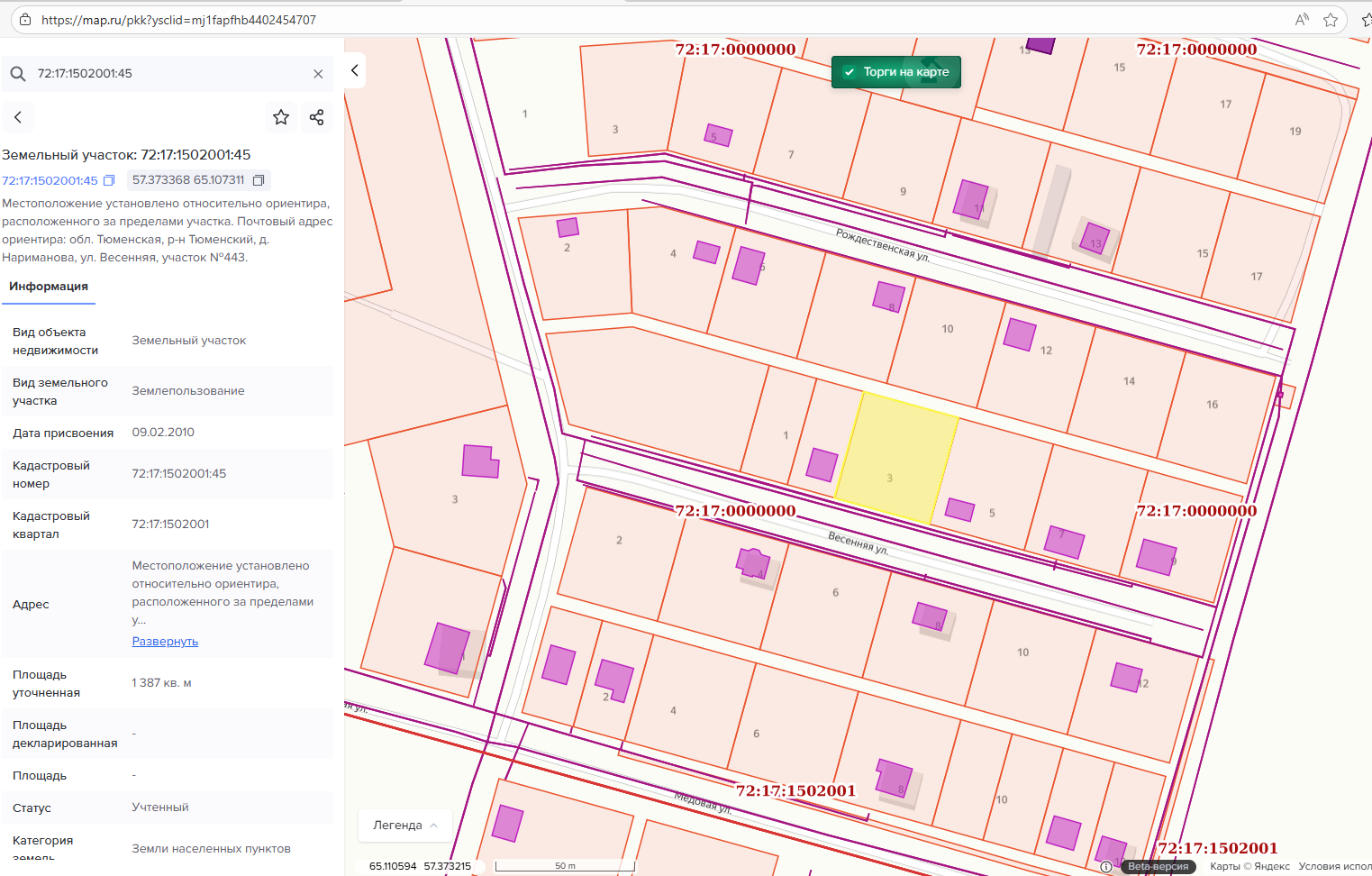 - Адрес объекта: обл. Тюменская, р-н Тюменский, д. Нариманова, ул. Весенняя, участок №443