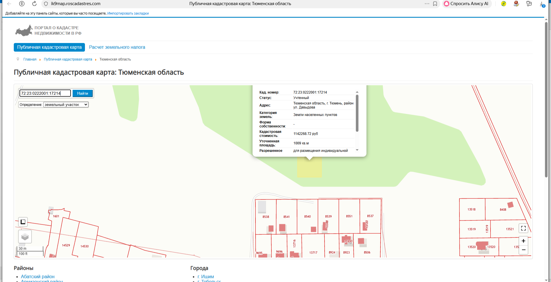 - Адрес объекта: Тюменская область, г. Тюмень, район ул. Давыдова
