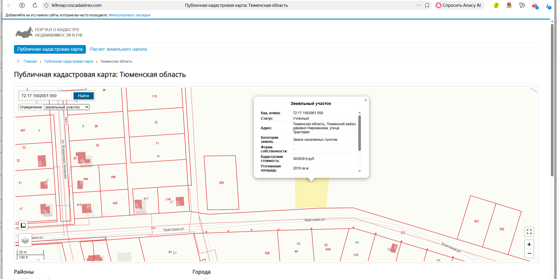 - Адрес объекта: Тюменская область, Тюменский район, деревня Нариманова, улица Трактовая