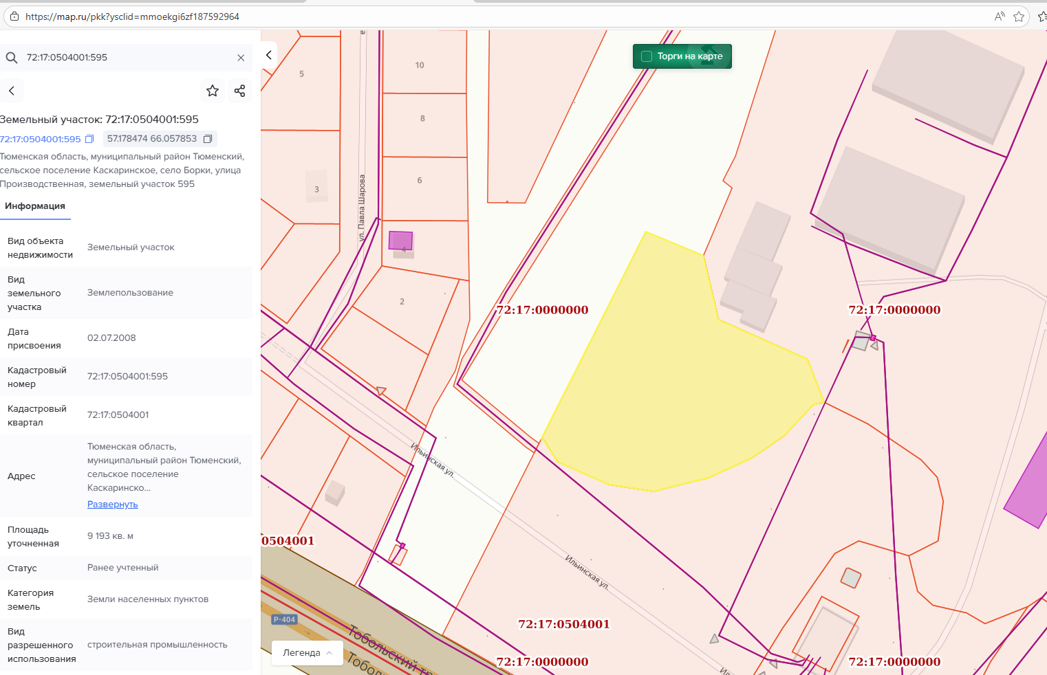- Адрес: Тюменская область, муниципальный район Тюменский, сельское поселение Каскаринское, село Борки, улица Производственная, земельный участок 595