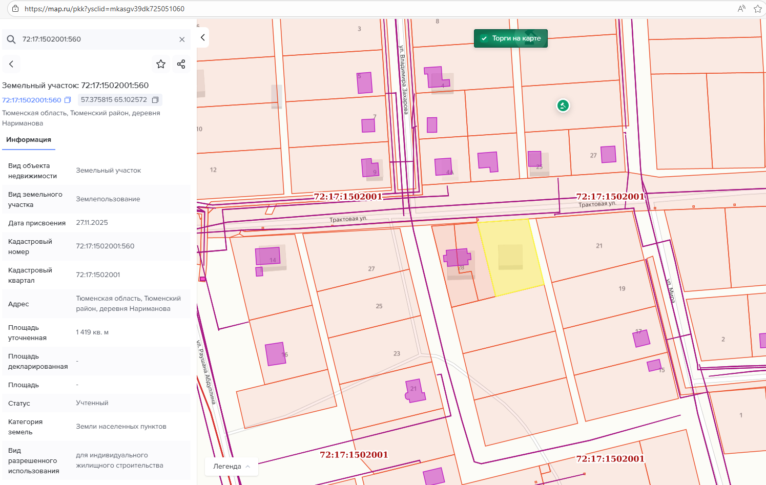 - Адрес объекта: Тюменская область, Тюменский район, деревня Нариманова, улица Трактовая