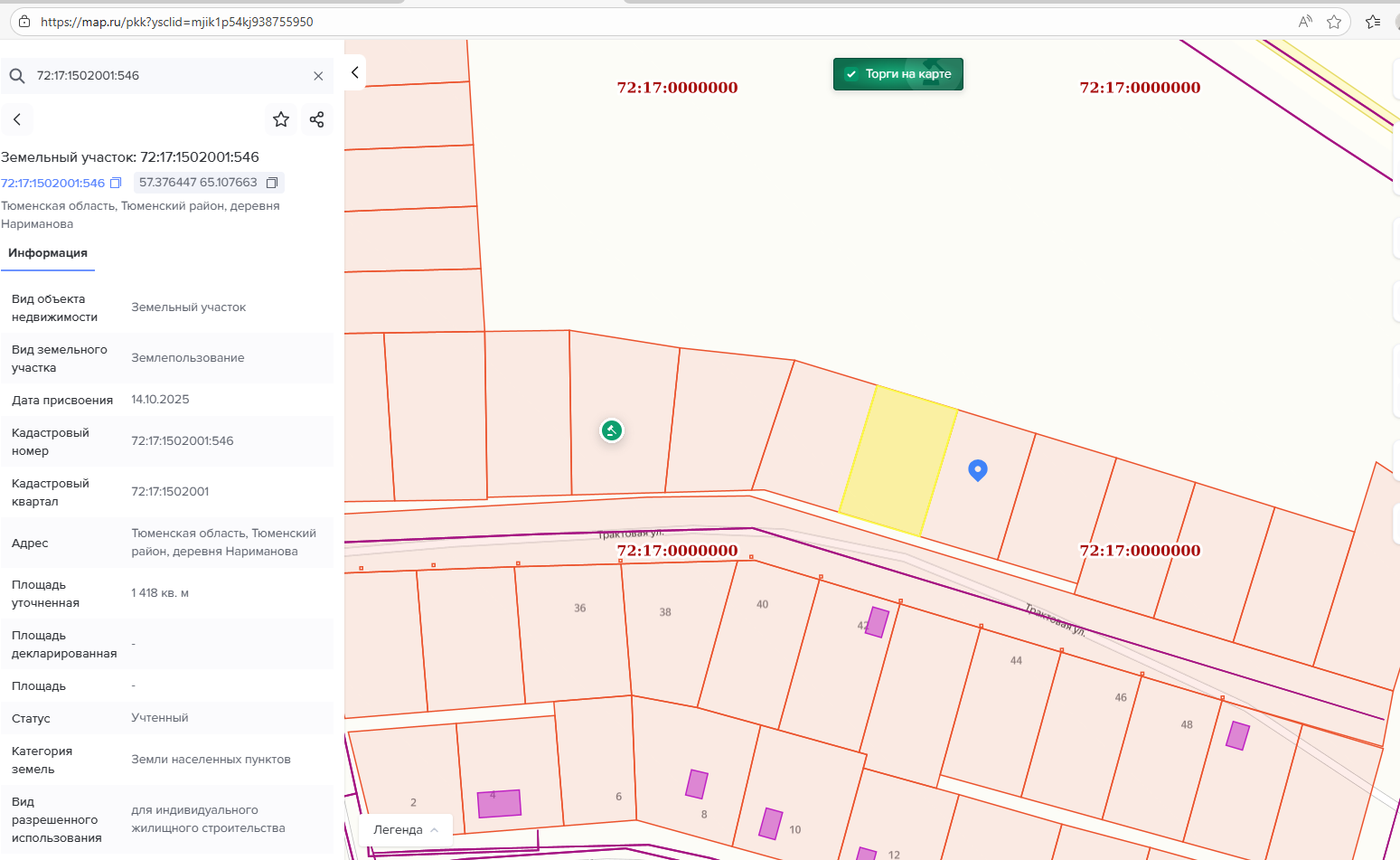- Адрес объекта: Тюменская область, Тюменский район, деревня Нариманова, улица Лебяжья
