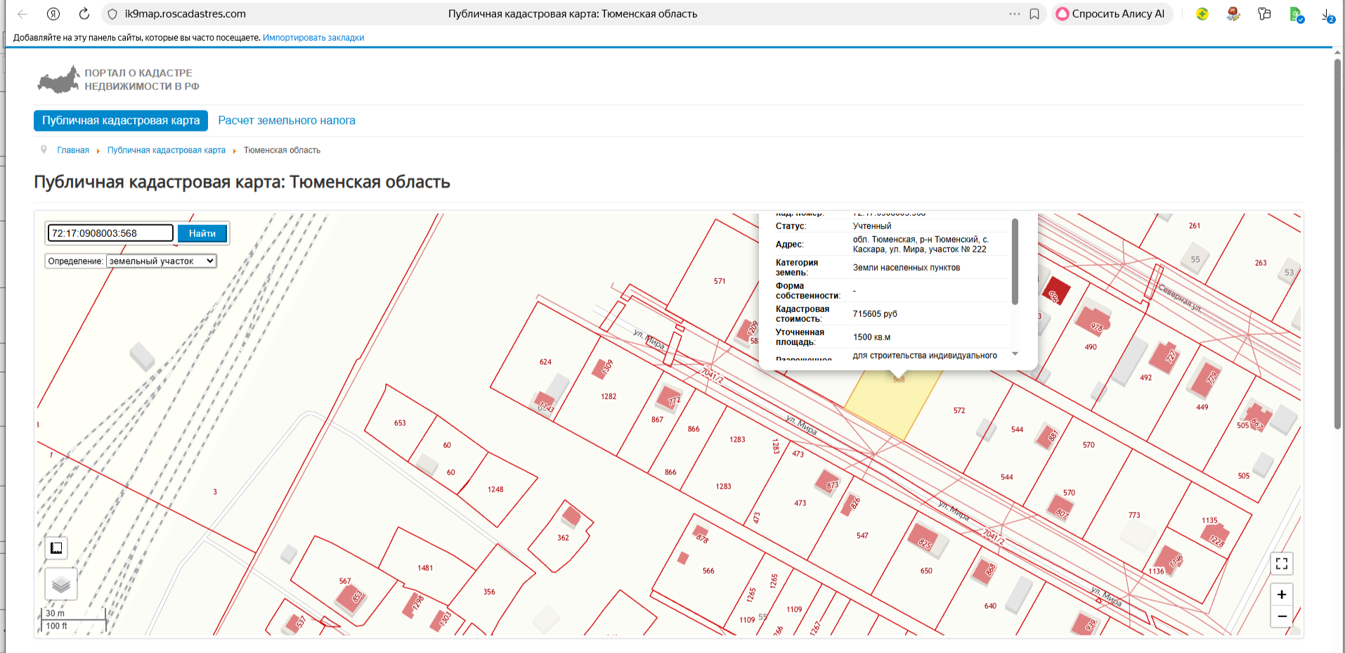 - Адрес объекта: обл. Тюменская, р-н Тюменский, с. Каскара, ул. Мира, участок № 222